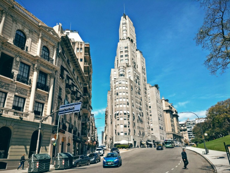 Weiter geht’s vorbei am Palast des Außenministerium, der stark nach Baujahr 1500 aussieht, aber gerade einmal 120 Jahre alt ist. In Sichtweite hiervon befindet sich folgendes Gebäude, welches nur ein paar Jahre älter ist, aber in völligem Kontrast zum Palast steht. Zu seiner Zeit war es mit seinen Hundertzwanzig Metern das höchste Gebäude Südamerikas und sollte einen neues Zeitalter mit dem Vorbild New York einläuten.