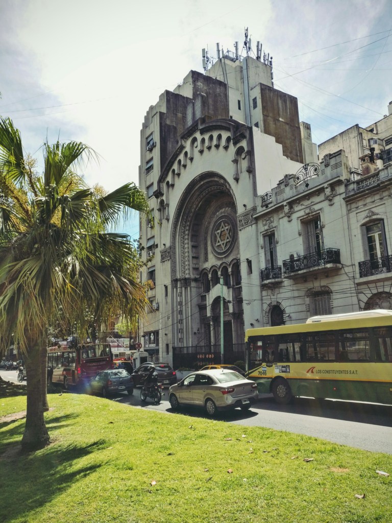 Wir laufen ein wenig und kommen an einer großen Synagoge vorbei. In Argentinien gibt es anscheinend sehr viele Juden und der Großteil von Ihnen lebt in Buenos Aires. Judenfeindlichkeit ist allerdings auch hier nicht unbekannt und so kommt es, dass die zwei größten Bombenanschläge des Landes Mitte der neunziger Jahre auf ein jüdisches Viertel und das jüdische Kulturzentrum von Buenos Aires verübt wurden. Dabei kamen über Hundert Menschen zu Tode. Auf Grund von Verstrickungen in der Regierung und Korruption, wurden die Täter bis heute nicht zur Rechenschaft gezogen.