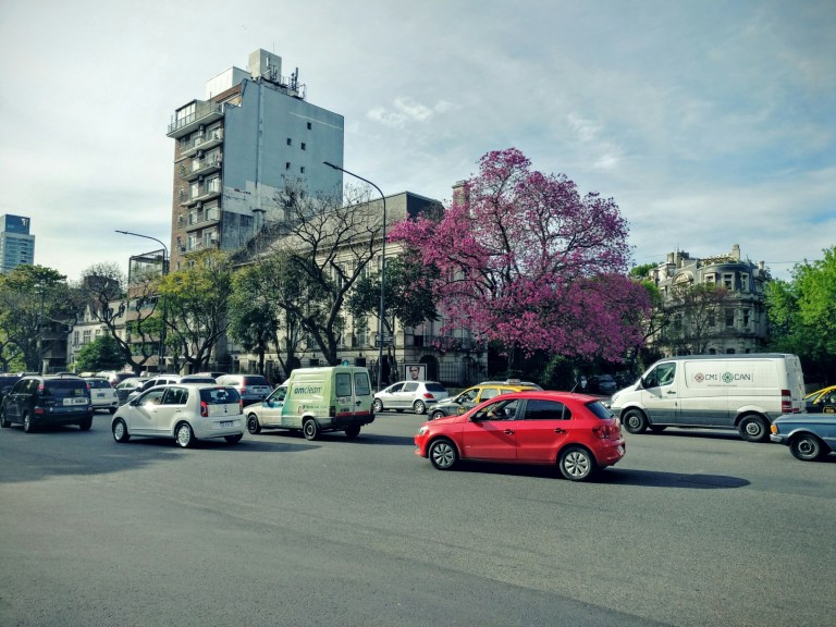 Unterwegs sind wir an ein paar Parks und einem dieser kräftig blühenden Bäume vorbeigekommen. Sie stehen überall in Buenos Aires und anscheinend haben wir Glück, da sie nur für rund zwei Wochen in Blüte stehen. Schließlich kommen wir zum Ausstellungshaus, dem Malba. Es ist ein großes Kunstmuseum mit wechselnden Ausstellungen.