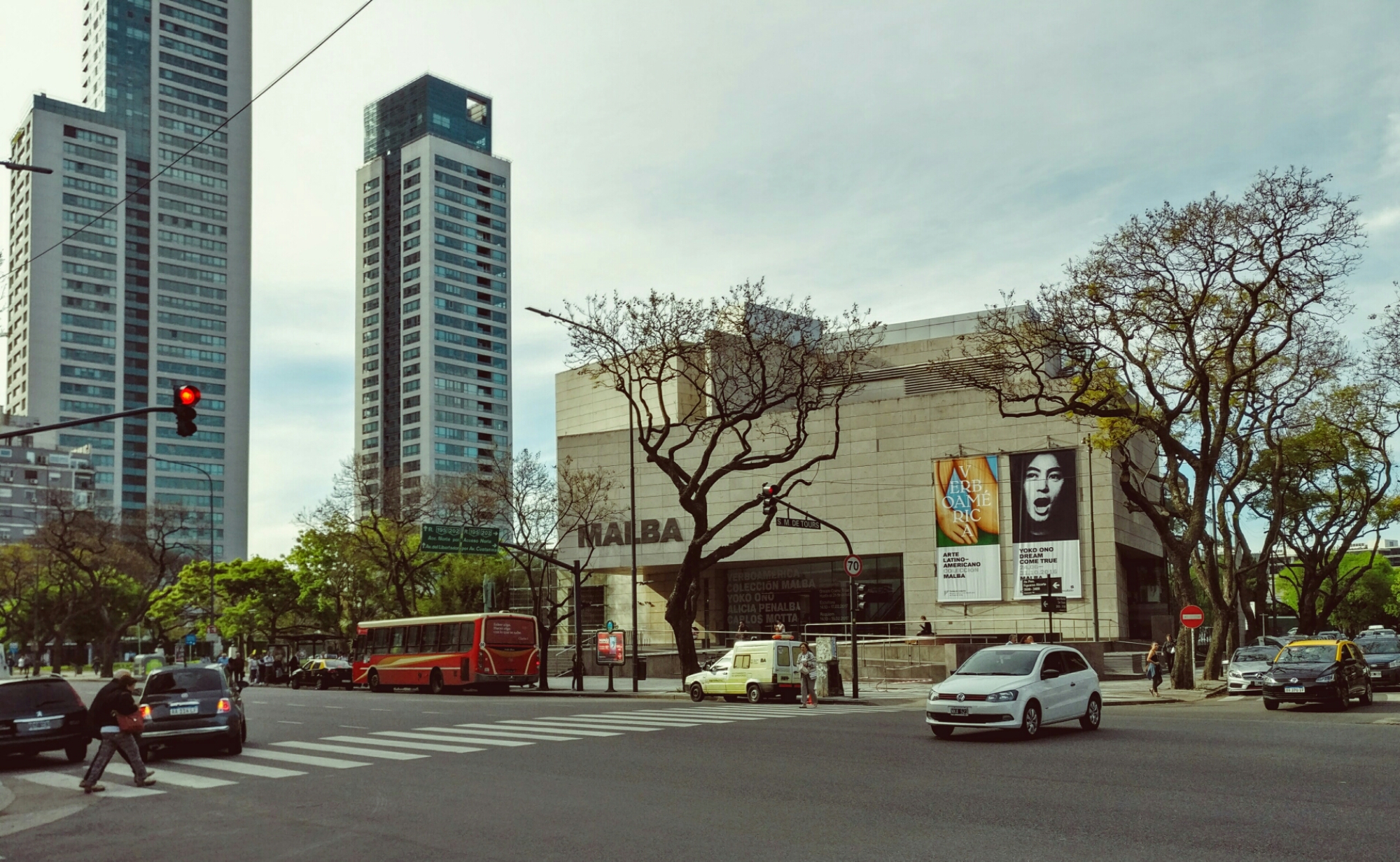 Unterwegs sind wir an ein paar Parks und einem dieser kräftig blühenden Bäume vorbeigekommen. Sie stehen überall in Buenos Aires und anscheinend haben wir Glück, da sie nur für rund zwei Wochen in Blüte stehen. Schließlich kommen wir zum Ausstellungshaus, dem Malba. Es ist ein großes Kunstmuseum mit wechselnden Ausstellungen.