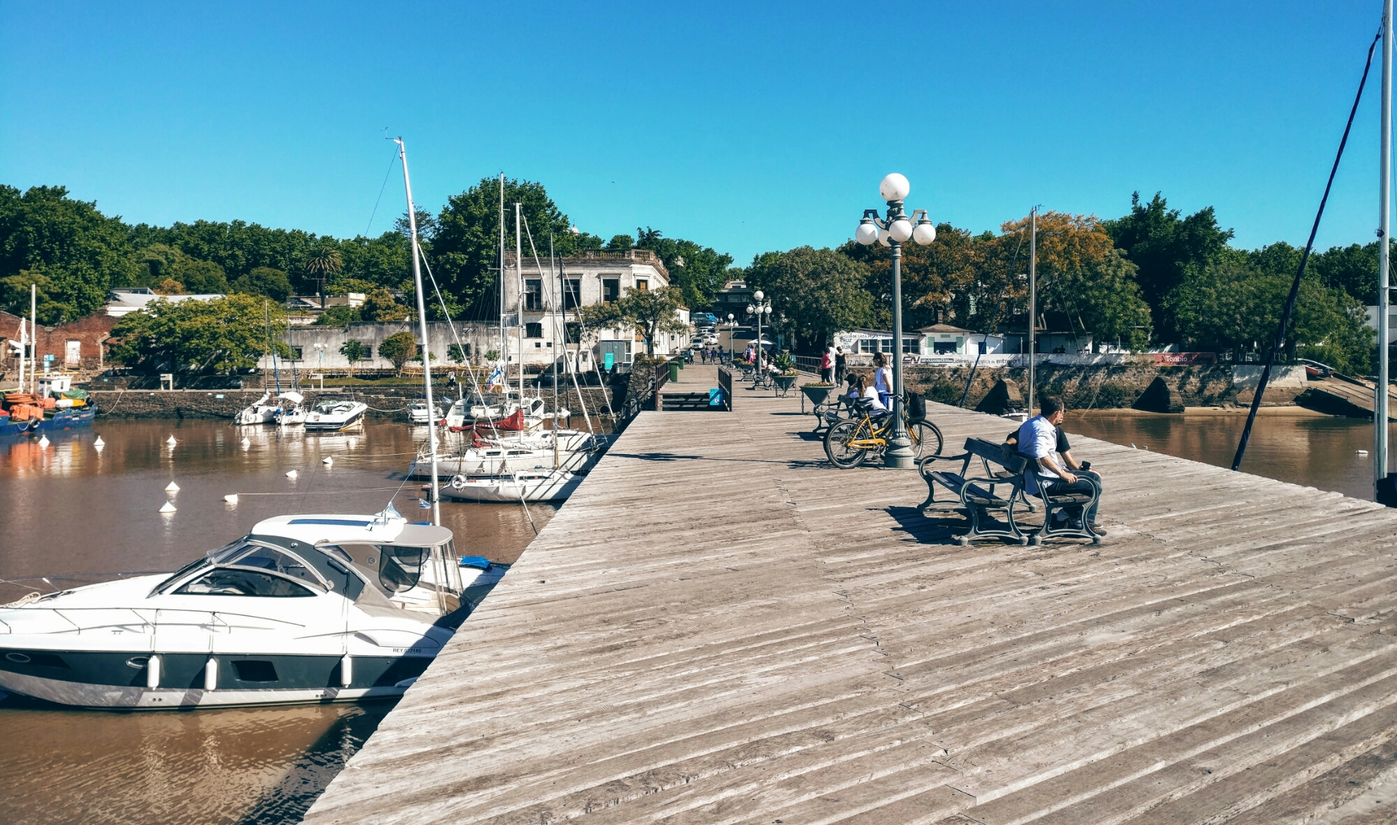 Nach ein paar Minuten fahre ich mit meiner Runde fort. Ich komme am Leuchtturm vorbei und gehe zum kleinen Yachthafen der Stadt. Früher starteten von hier die Schmugglerschiffe mit ihren Waren für Buenos Aires. Die Portugiesen haben diesen strategischen Punkt genutzt, um aus dem spanischen Buenos Aires und den umliegenden Ländereien profit zu schlagen. Außerdem war Colonia von großer militärischer Bedeutung, was zur Folge hatte, dass diw Stadt über zehn Mal den Besitzer wechselte. Zwischen Spanien und Portugal muss hier eine regelrechte Fede entbrannt sein, aber auch die Engländer hatten mal ihre Finger im Spiel.