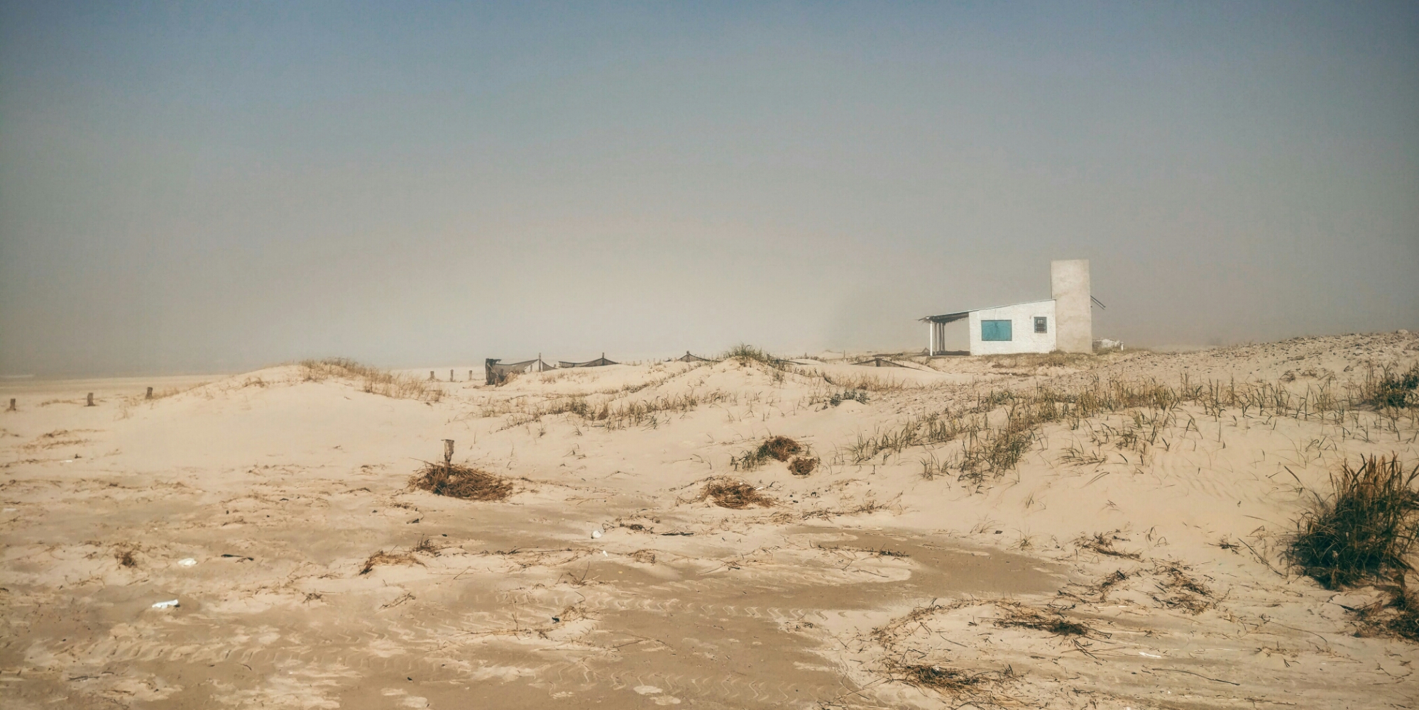 Leichter gesagt als getan, denn ab einem gewissen Punkt scheint der Wind meine Pläne durchkreuzt zu haben und mir bleibt nur übrig auf gut Glück weiter zu laufen. Zur Not könne ich ja immernoch ins nahe gelegen Dorf zurückkehren. Irgendwann entdecke ich am Strand ein „Salida“-Schild und verlasse diesen dort um mich fortan durch die Dünen zu kämpfen. Hier finde ich wieder Reifenspuren, doch nach den tiefen Furchen des Militärfahrzeugs sehen diese nicht aus. Aber Auto ist Auto, denke ich mir, denn von irgendwo müssen die anderen Fahrzeuge ja auch herkommen.