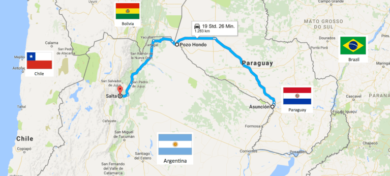 Nach Paraguay bin ich überhaupt erst gekommen, weil ich langfristig von Puerto Iguazu nach Salta im Nordwesten Argentiniens gelangen wollte. Geplant war von Asunción anschließend wieder die Grenze nach Argentinien zu überqueren, grob 300 Kilometer gen Süden nach Resistencia zu reisen und schließlich weitere 800 Kilometer nach Westen zu queren. Das ist zweifelsohne die einfachste und sinnvollste Route, um von Asunción an mein Ziel zu gelangen.
