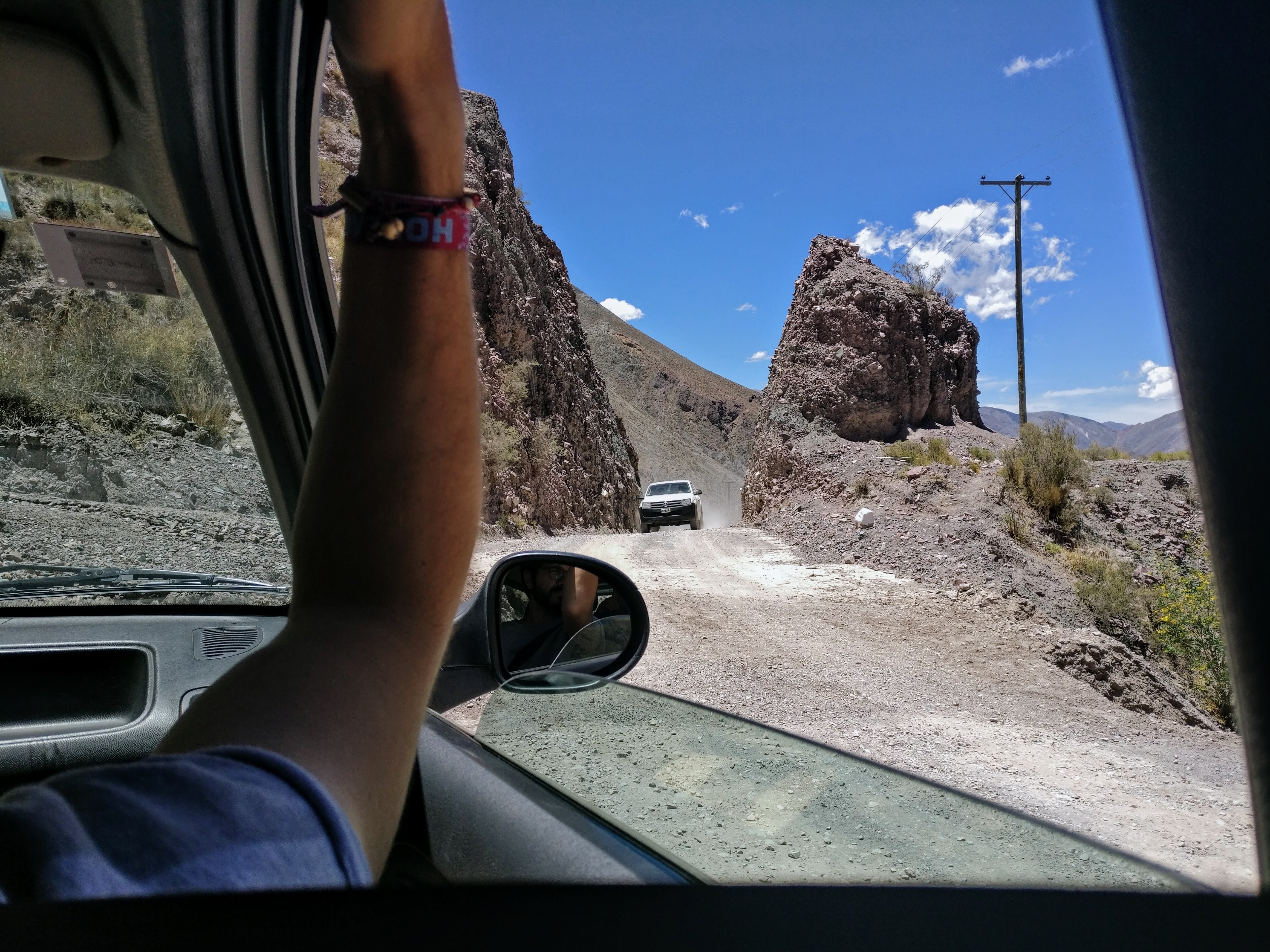 Einen Augenblick später verlassen wir nach 150 Kilometern die gut geteerte Straße und biegen auf einen üblen Schotterweg Richtung Iruya. Es sind bis dorthin nur 45 Kilometer, aber benötigte Fahrzeit wird mit grob 1,5 Stunden angegeben. Da weiß man schon in etwa, was für eine Straße uns erwartet. Ob der kleine Renault Clio das packt?