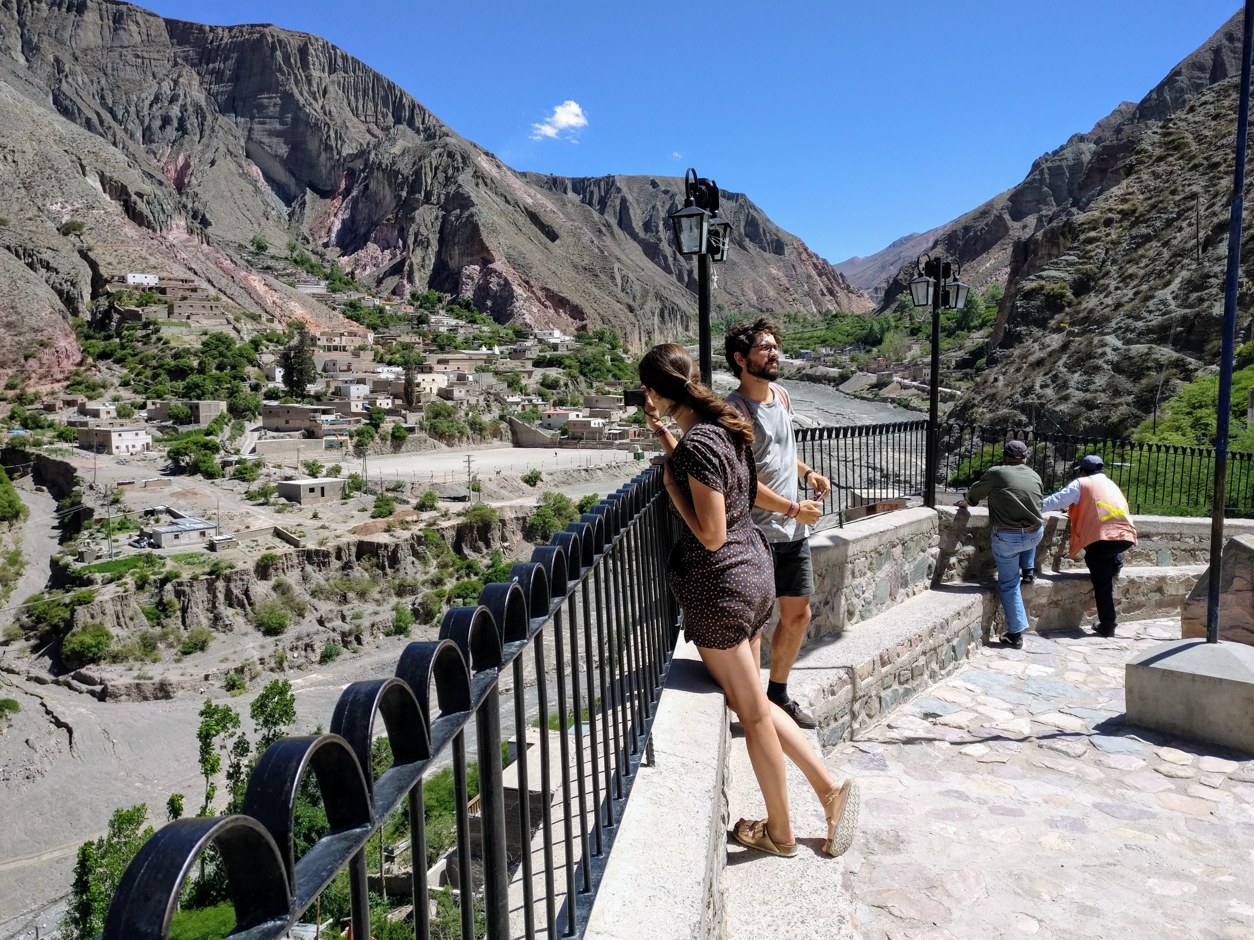 Ich befinde mich an einem Aussichtspunkt direkt über dem Dorf und staune über die Größe Iruyas. Es erstreckt sich über beide Seiten des Flusses. Anbei seht ihr den Dorfkern mit Kirche, Dorfplatz und allen wichtigen Geschäften fürs tägliche Leben. Viele Häuser und Dächer wirken erstaunlich modern und weisen für mich daraufhin, dass der Tourismus floriert und ganz gut Geld einbringt. Man sieht außerdem den Verlauf des Flusses und wie dieser sich eine scharfe Schneise durch den porösen Untergrund schneidet, auf dem Iruya gebaut ist.