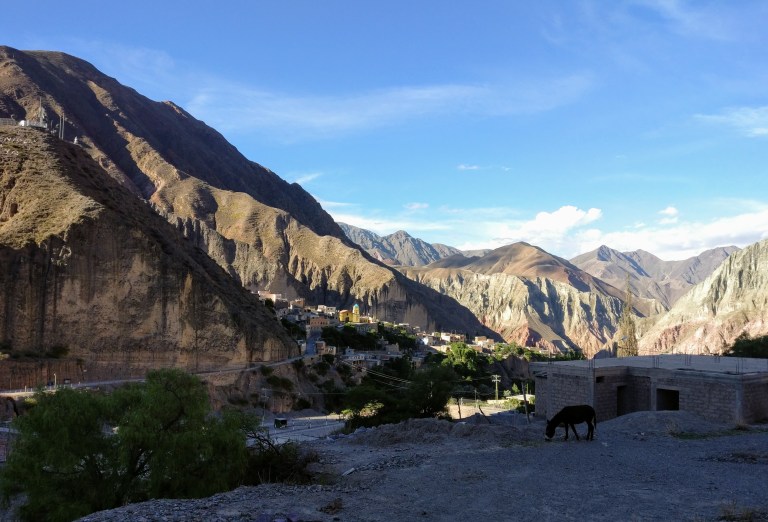 Ein paar Minuten später ist es dann so weit. Von weitem können wir einen ersten Blick auf Iruya erhaschen. In mitten dieser rauen Landschaft strahlt die Gelb-Blau bemalte Dorfkirche mit aller Kraft und lockt uns förmlich zu sich. Ich habe selten so ein schönes Bergdorf gesehen.