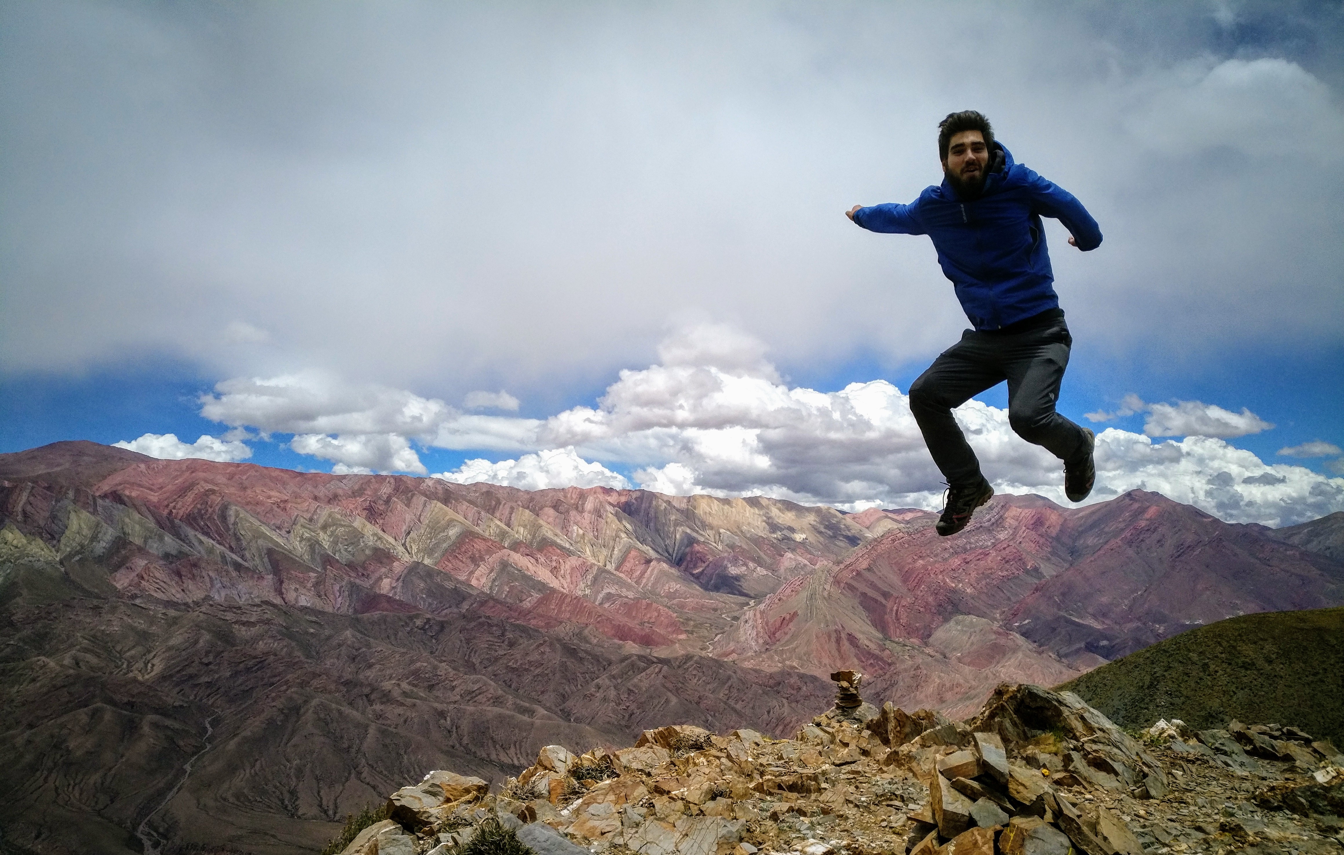 Hier suche ich einen Fahrer, denn der Hornocal liegt einige Kilometer außerhalb der Stadt und ein Fußmarsch würde mehrere Stunden dauern. Schnell finde ich, wonach ich ausschau halte und es wartet bereits ein japanischer Tourist mit ihm. Kurze Zeit später taucht dann auch ein Argentinier auf und wir einigen uns darauf uns das Auto zu dritt zu teilen. Es bilden sich nämlich bereits dicke Wolken, welche damit beginnen die Berge mit dunklen Schatten zu überziehen. Um den Hornocal in seiner vollen Pracht bewundern zu können, brauchen wir aber so viel Licht wie möglich, also los geht’s!