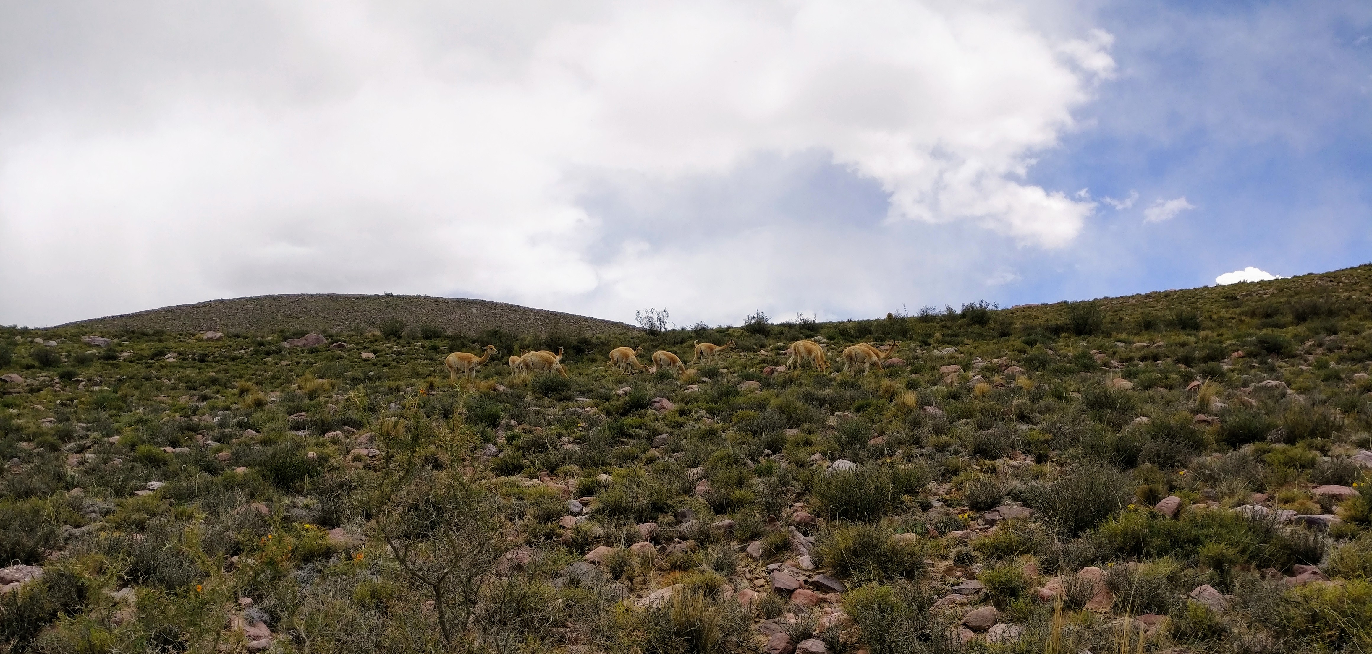 Wir sind jedenfalls höchst zufrieden und machen uns darauf wieder an den Abstieg. Unterwegs sehen wir eine kleine Herde Vicuñas, die das andine Pendant zu unseren Gemsen sind. Im Prinzip handelt es sich um kleine Lamas, die aber ausschließlich wild leben und gelegentlich für ihre dichte, feine Wolle gejagt werden.