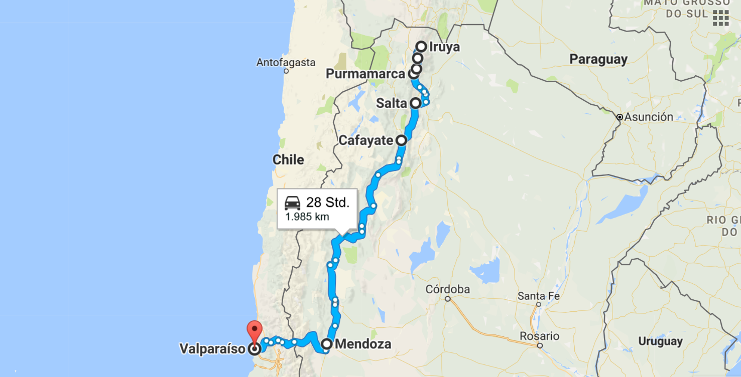 Nach gut einer Stunde geht die Sonne auf und wir befinden uns wieder auf der Hauptstraße der Quebrada de Humahuaca. Von nun an geht es gen Süden und das auch bezüglich meines weiteren Reisplans. Zunächst möchte ich ein paar Orte in diesem Tal besuchen, dann weiter nach Salta ziehen und die Bergregion um Cafayate besuchen. Anschließend werde ich weiter bis Mendoza fahren und von dort aus die Grenze zu Chile überqueren, um schlussendlich zum Neujahr in Valparaiso zu sein. Die Operation Süden beginnt.